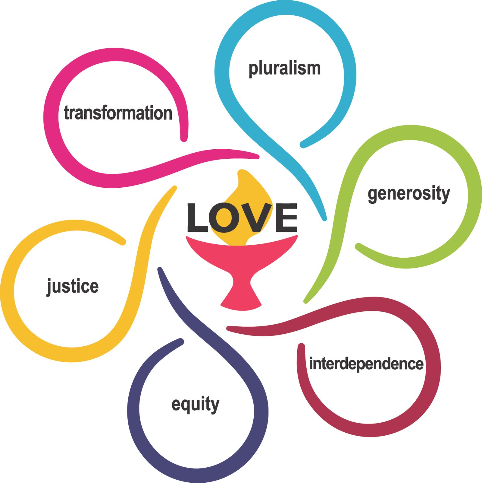 Love is the power that holds us together and is at the center of our shared values. We are accountable to one another for doing the work of living our shared values through the spiritual discipline of Love.